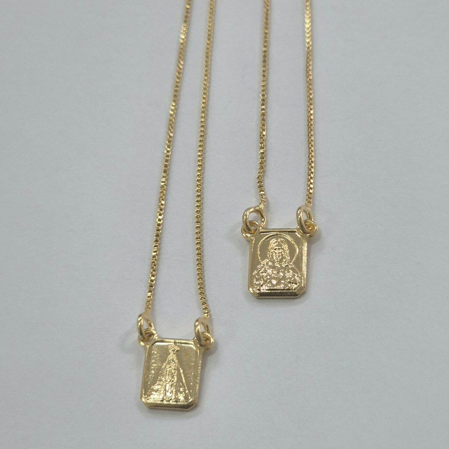 F1ES5008 - Folheados - Escapulário mini S.C. Jesus e N.S. Aparecida na V12