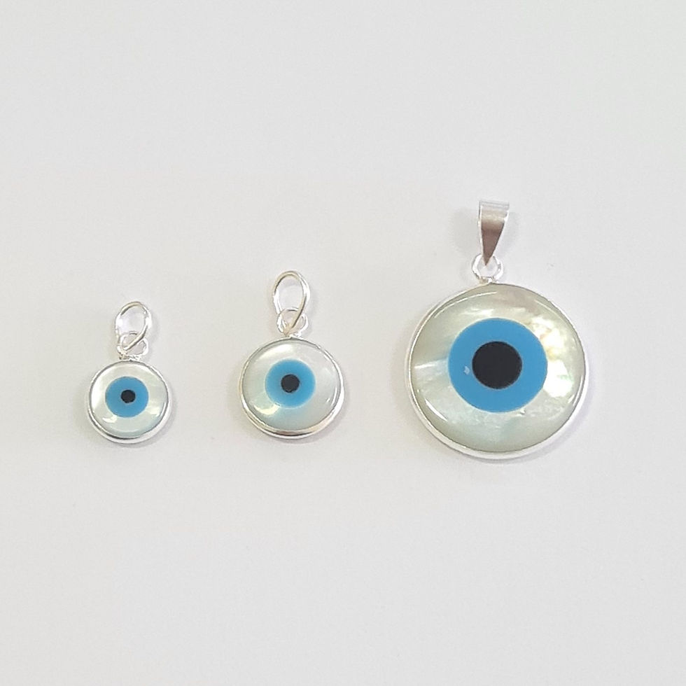 1PG2188 - Pingente madre pérola de olho grego na cravação inglesa